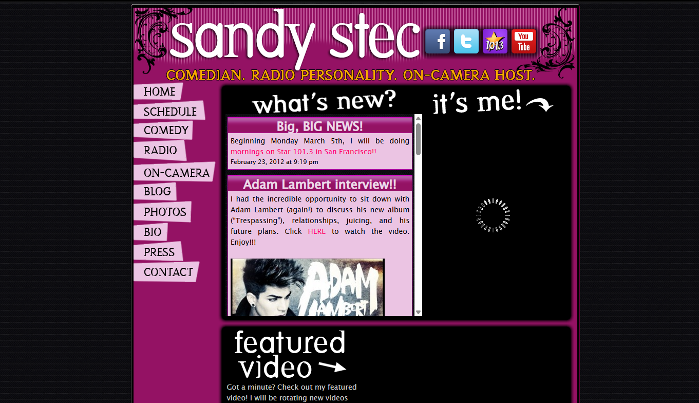 The theme was fixed-up version of her previous site. It wouldn't have been my first choice, but working with the constraints I was very happy how it came out. The old site is now offline, but you can find a mostly-working version of it here on the wayback machine: https://web.archive.org/web/20130624082858/http://sandystec.com/
