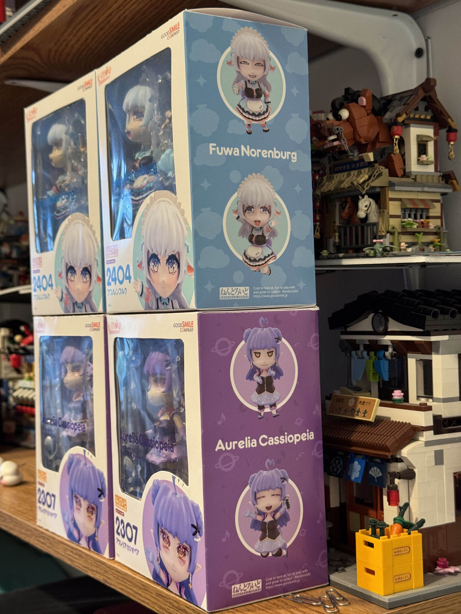 Later that year I had the opportunity to go to Offkai, which is a vTuber convention hosted in San Jose California. Of the many vTubers attending, Aurelia Cassiopeia was there so I decided to make another Nendoroid to gift her, as well as another completely different character, which I'll take about in another post. Here's the complete in box set of four I've built: