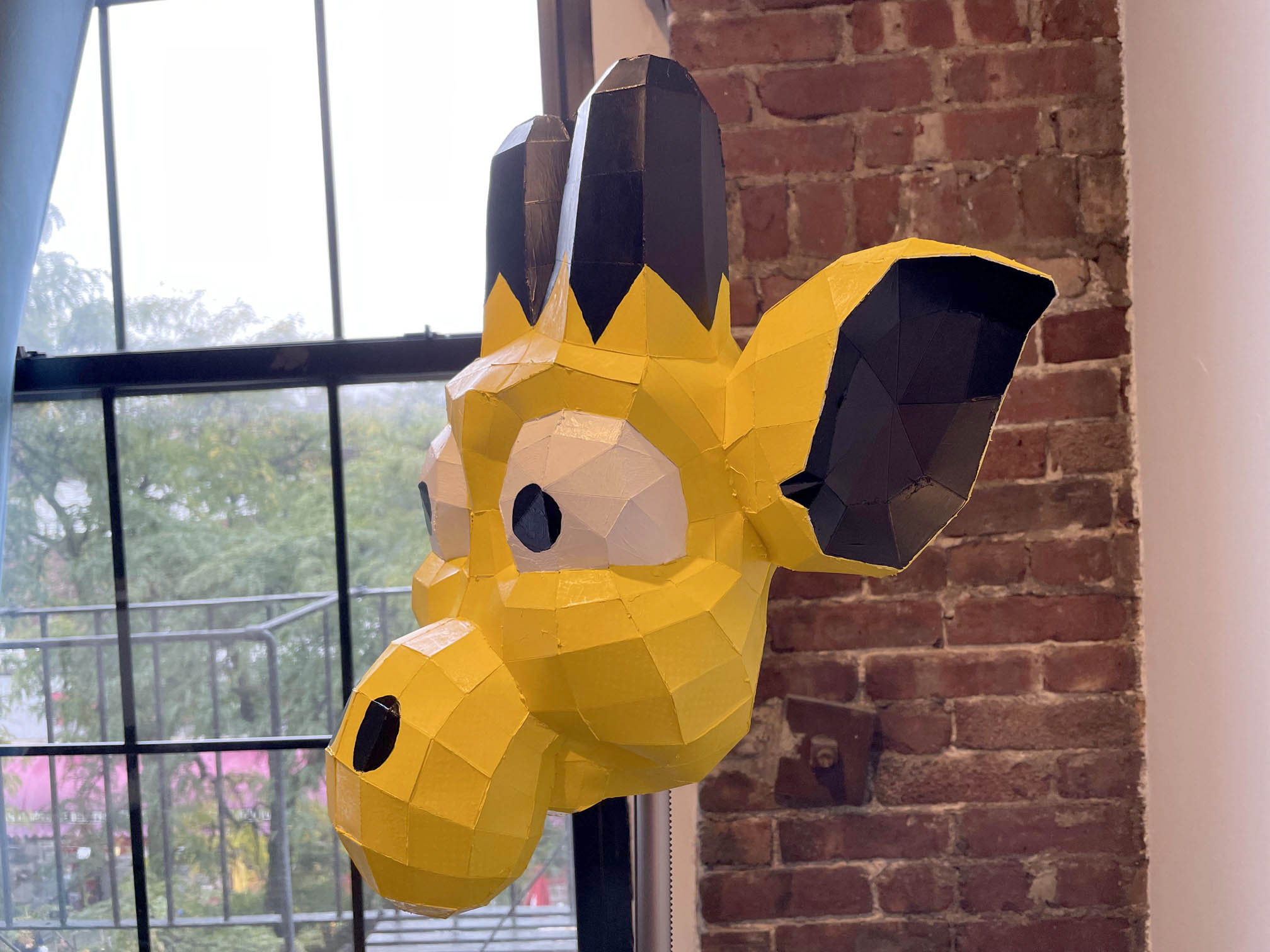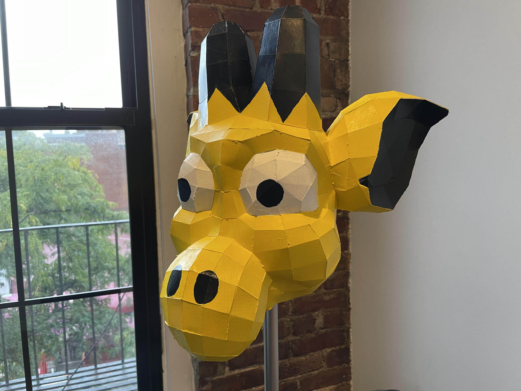 I took my base model and re-topologized it to be low poly & sent it to the printer. Once it was assembled, I spray painted it yellow and painted on the details manually. It came out great!