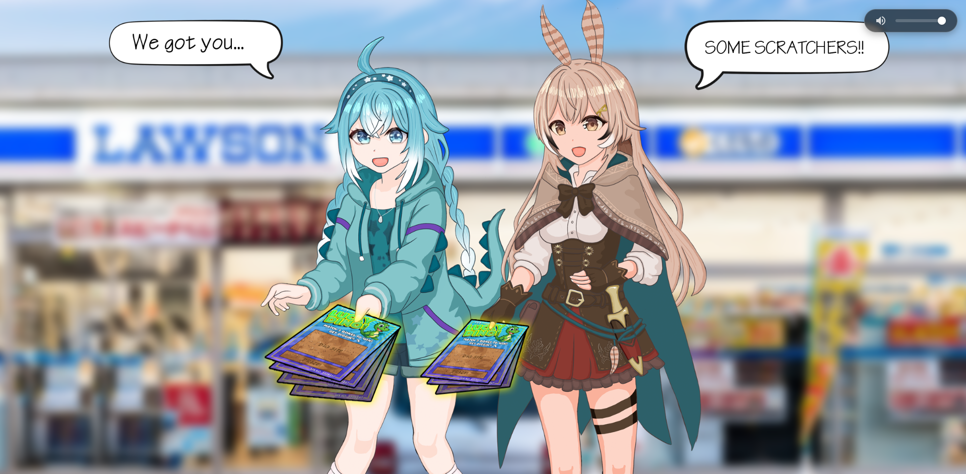 My idea was simple - Skiddo and Mumei would exist a Japanese style convenience store (known as Konbinis), and had the player some lottery scratcher tickets. If they're winners, they'd reveal a steam key. Pretty simple project to code, so I've included this project in my art section, because the hardest part was the drawing by far.