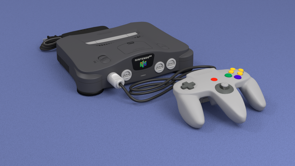 Everything about this modeling project was more difficult than I expected. The 3DS XL went very smoothly, but didn't prepare me for all the crazy curves of the N64 controller or the console itself. Further, I always try to optimize my textures maps (diffuse, bump, and spec) to fit everything necessary in one square. In this case, I found that the console and the controller had too many details to fit all in one, causing me to rework the texture lay out half way through.