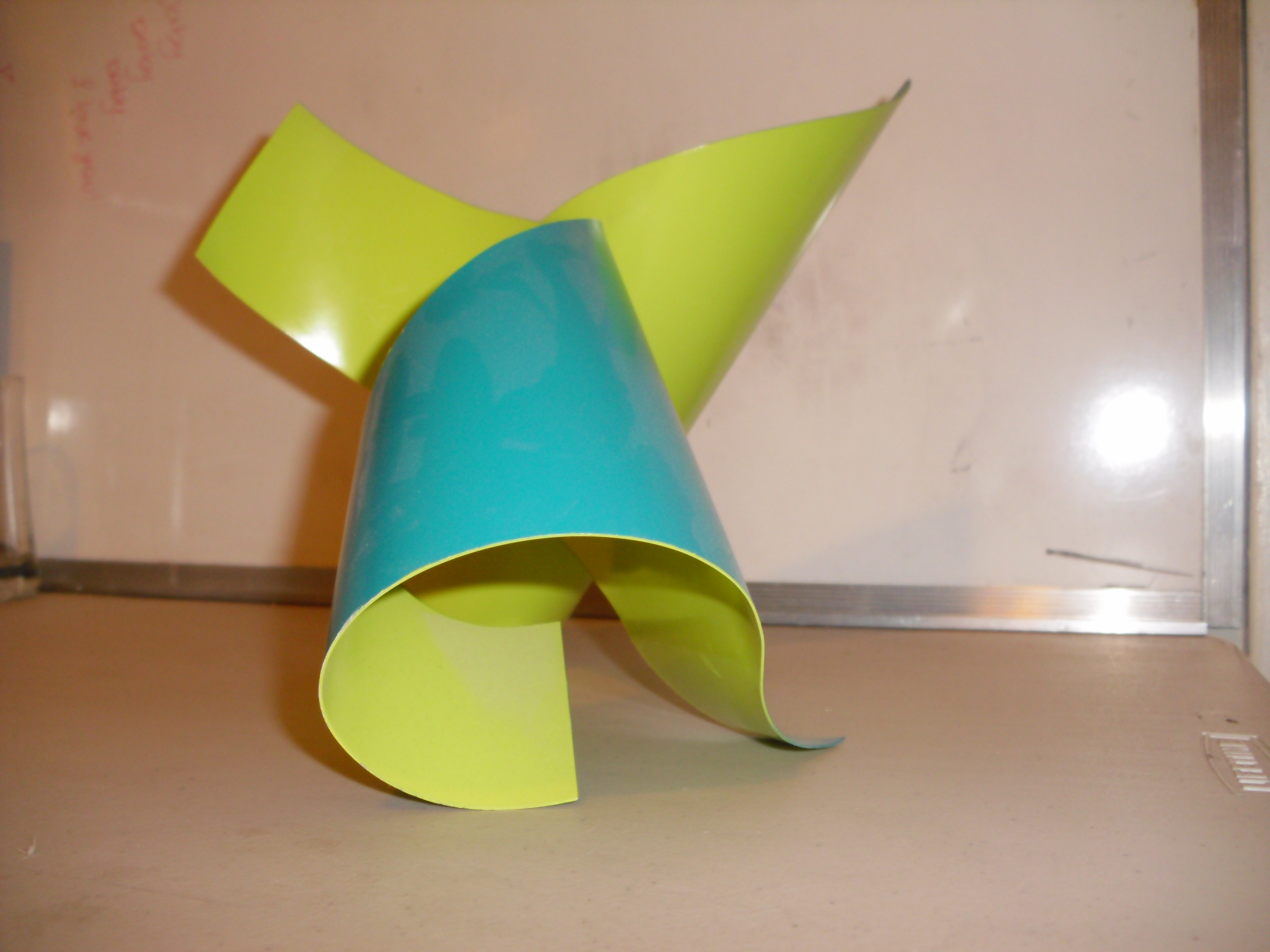 This project was assigned for my 3D Concepts class. We were given a square piece of sheet metal, and told we were able to make 1 cut and 2 or 3 bends per remaining fragment. We were also allowed to paint it with up to two colors of our choice. When we were finished we would rivet the two halves together.